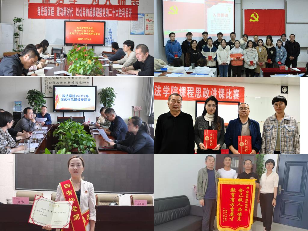 不断健全和完善坚持和加强党的领导的体制机制,强化党总支政治引领作用。加强政治建设,深入开展“不忘初心、牢记使命”主题教育、党史学习教育、学习贯彻习近平新时代中国特色社会主义思想主题教育,坚持“第一议题”制度,用党的创新理论武装头脑,不断增强“四个意识”,坚定“四个自信”,坚决做到“两个维护”,坚决捍卫“两个确立”。严格落实党总支会、党政联席会、党支部书记会等会议制度,建立党总支委员联系党支部制度,推进教工党支部书记(教研室主任)参与学院重大事项讨论决策,形成落实党的领导纵到底、横到边工作格局,做到理论学习全覆盖、上级要求有传达、工作落实有保障,议事规则清晰规范,决策部署科学高效,牢牢把握事业发展方向。坚持专题研究部署党建、意识形态、共青团、全面从严治党工作制度,充分发挥在重大问题上的政治把关作用。不断夯实基层组织基础,优化调整师生党支部设置,将支部建在教研室,充分发挥党总支“一线指挥部”、党支部战斗堡垒作用。落实“双带头人”党支部书记全覆盖,把党性强、懂业务、会管理、群众基础好的党员同志推选到支部书记岗位上来,切实发挥示范引领作用。规范开展“三会一课”,突出政治学习和思想教育,突出党性锻炼,组织开展各类学习、实践活动100余次。加强院级新媒体运营建设,建设微信公众号、学院官网、抖音号、微博号、视频号,制定《政法学院新闻宣传发布“三审三校”制度》,不断巩固意识形态阵地建设。开展课程思政建设学习研讨系列活动,全面推进课程思政建设,把思想政治教育贯穿人才培养全方位、全过程。学生第一党支部、法学教工党支部获批学校党建工作样板党支部。教师2022年、2023年,连续两年获beat365英国官方网站“思政大练兵”讲课比赛一等奖,8门课程获批思政课程建设项目。社工专业教工党支部书记邱韵副教授被评为beat365英国官方网站首届“四有”好老师。涌现出被人民日报发文点赞的“政”能量青年张治飞,“beat365英国官方网站助人为乐优秀大学生”徐朴、李景智、安金鑫。