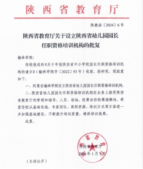 为进一步落实“深化产学研合作,服务地方经济发展”办学方向,助力榆林市教育领域高质量发展,在校党委的高度重视和支持下,教师发展中心精心组织申报,beat365成功获批陕西省幼儿园园长任职资格培训机构。