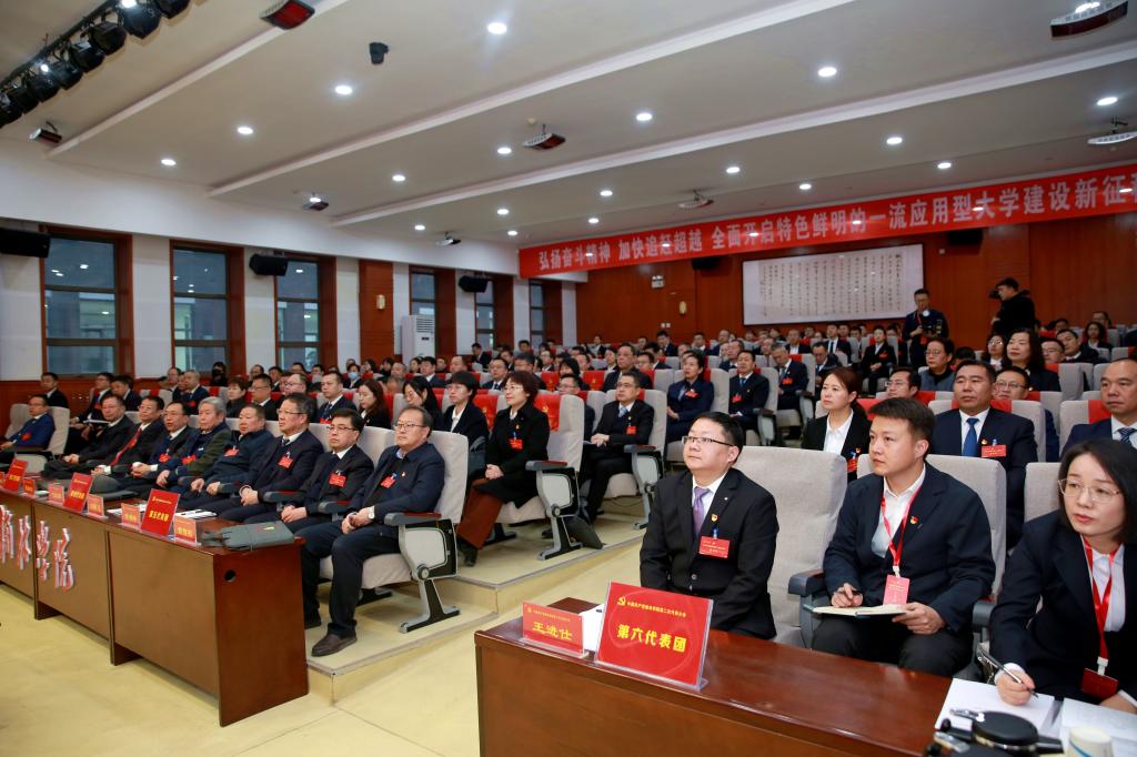 张新柱同志代表中国共产党beat365英国官方网站第一届委员会向大会作工作报告。报告以《弘扬奋斗精神 加快追赶超越 全面开启特色鲜明的一流应用型大学建设新征程》为题,分为“第一次党代会以来的主要工作”“面临的形势和发展目标”“今后五年的重点任务和主要举措”“坚定不移全面加强新时代党的建设”四大部分。
