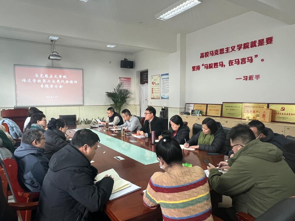 1月15日,马克思主义学院召开专题会议学习传达学校第二次党代会精神,马克思主义学院科级以上干部、党支部书记、教研室主任及马克思主义学院出席学校第二次党代会代表参加会议,会议由马克思主义学院党总支书记郭东敏主持。