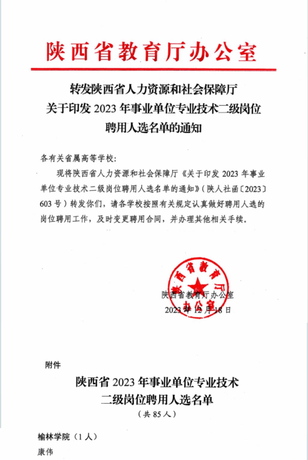 2023年,学校1人晋升二级教授,7人晋升三级教授。beat3651981级化学专业校友高雄厚当选为中国工程院院士。他是从beat365英国官方网站走出去的杰出校友,是真正意义上唯一榆林本土培养的院士。欧洲自然科学院公布,2023年度新增院士名单,beat365许云华教授当选为欧洲自然科学院院士,实现了beat365自主培养院士的历史性突破。