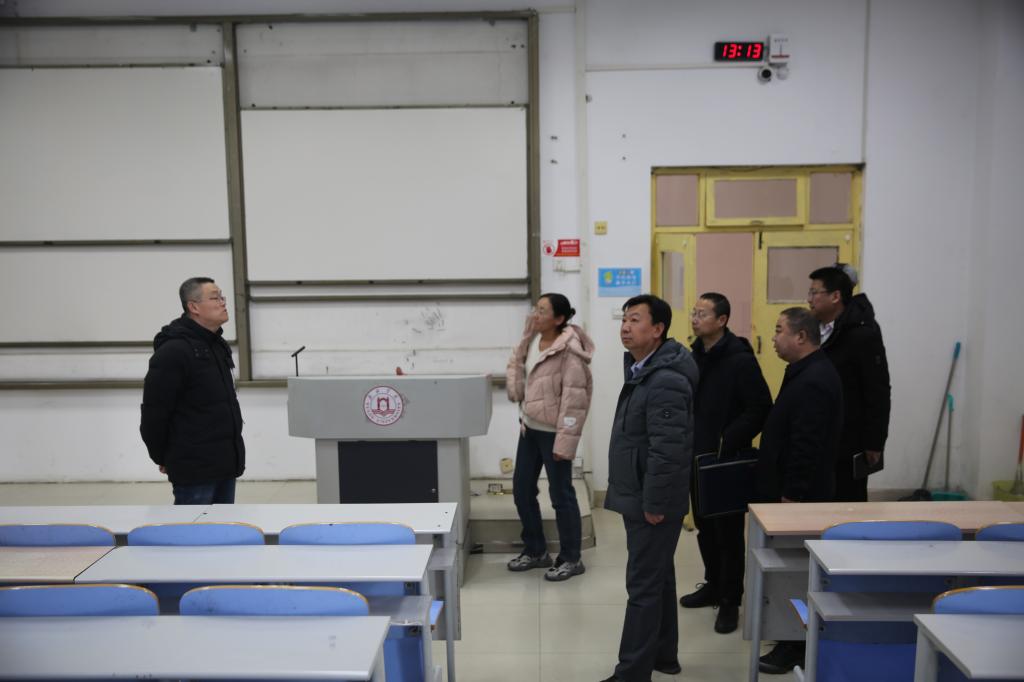 新年伊始,开学在即,为保证2024年春季开学工作安全有序推进,2月25日全天,校长康伟带队深入走访校园各处和有关单位,就学校开学前的服务、保障、运行、安全等工作展开全面检查,详细了解春季学期新校区建设、校园安全、教育教学、学生返校、服务保障等工作情况,对各单位工作准备和细致安排给予肯定。副校长张晓,党委副书记尚爱军,副校长闫龙、马亚军及各职能部门负责人陪同检查。
