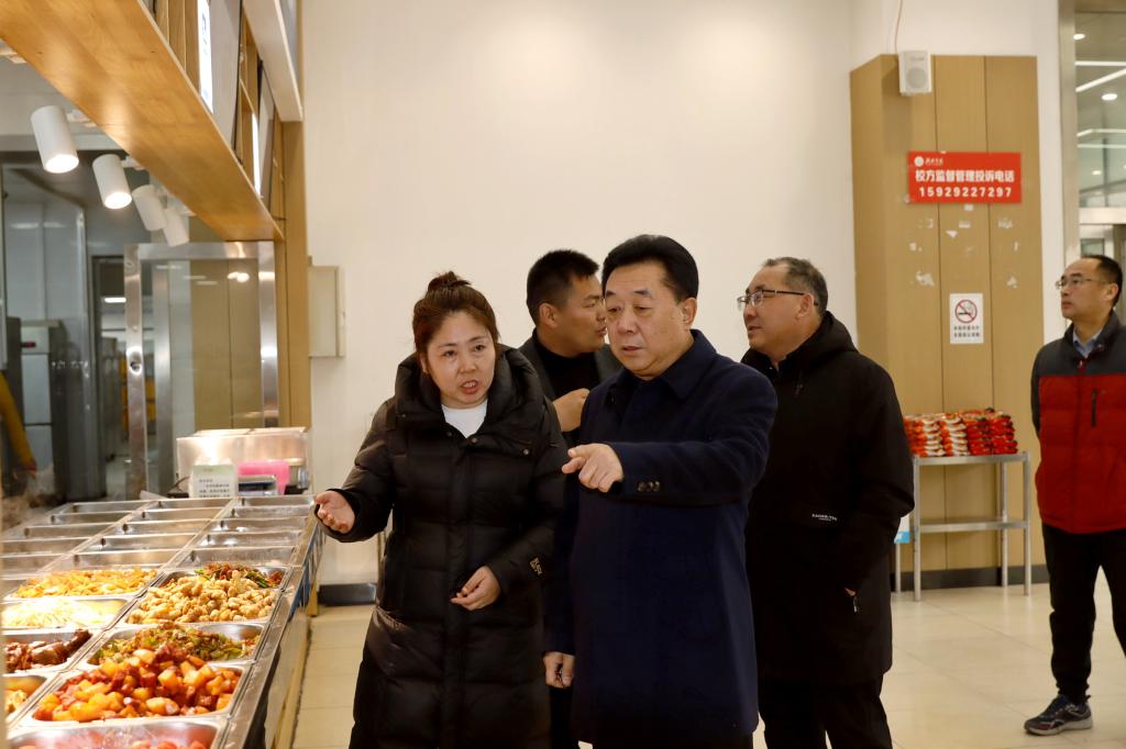 在教工餐厅与学生餐厅,校领导仔细察看菜品质量与操作间卫生情况,询问档口饭菜味道与价格,强调要严格落实“菜单、价单、质单、量单”四项要求,从源头上把好食品安全质量关,确保全体师生饮食安全。