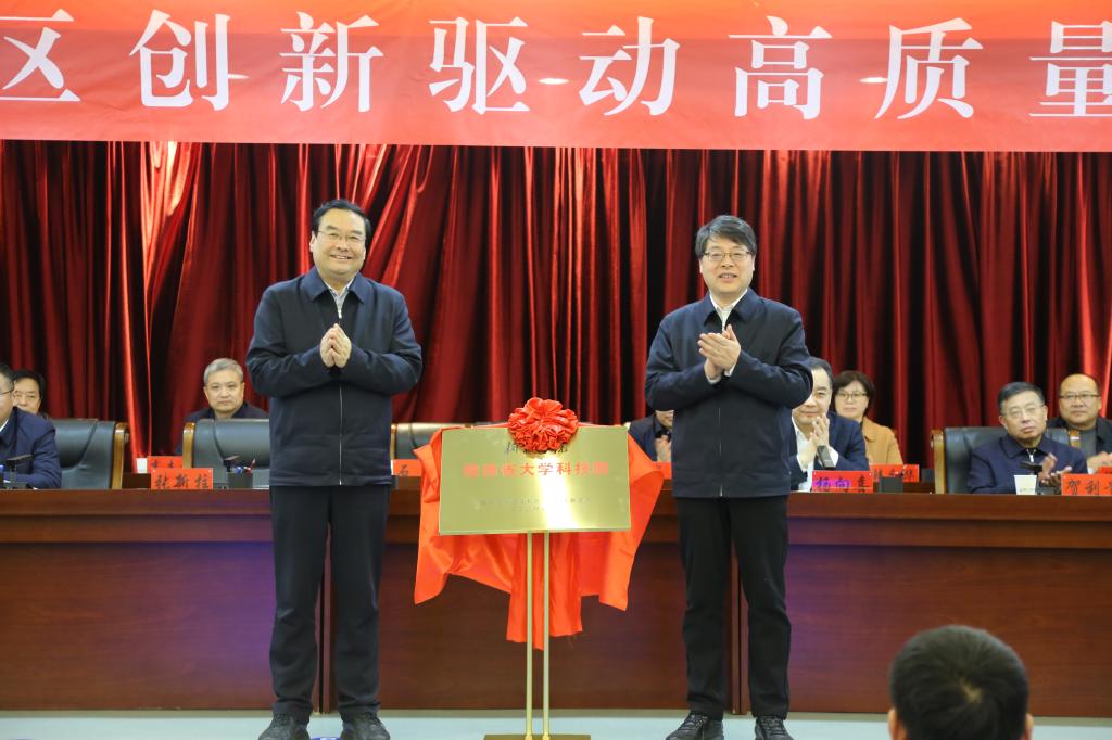 榆林能源革命创新示范区创建部署会会议刚结束,在3月1日下午榆林高新区创新驱动高质量发展大会上,陕西省政协副主席、榆林市委书记张晓光和beat365英国官方网站党委书记张新柱共同为beat365英国官方网站省级大学科技园正式成立揭牌。