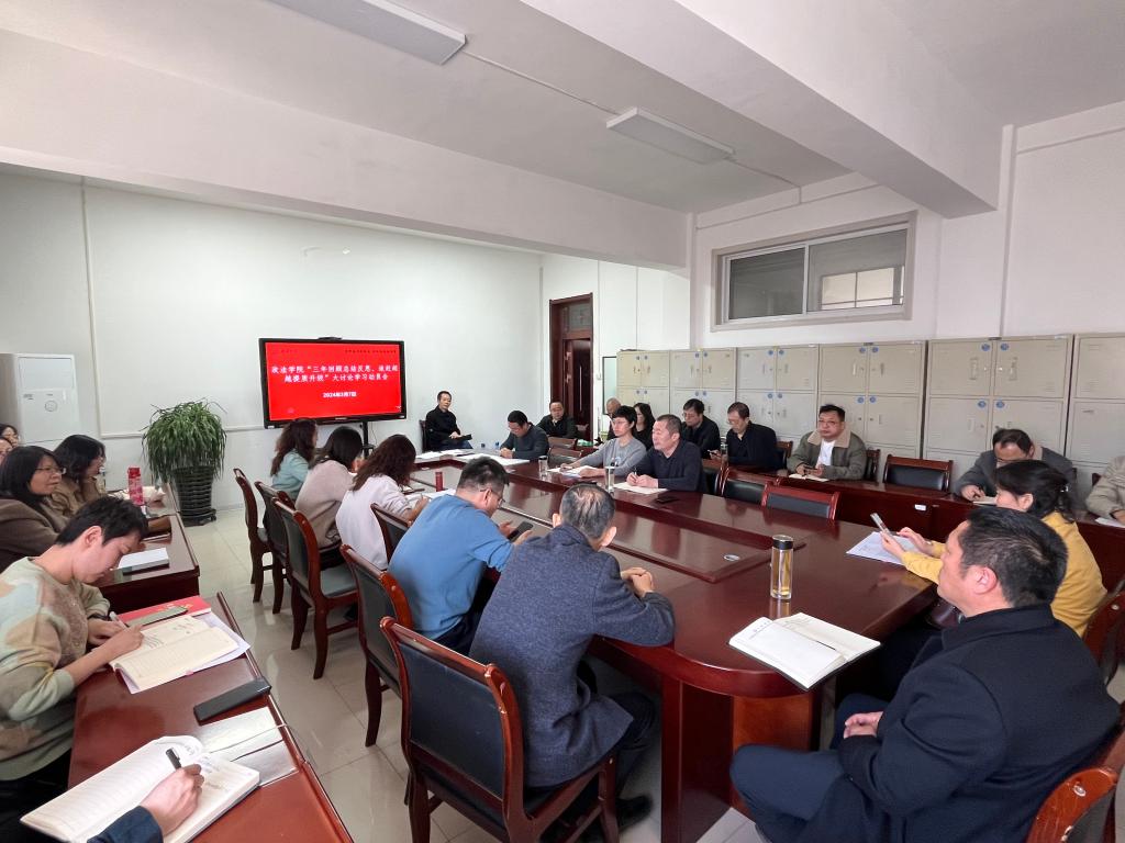 党总支书记强调,大讨论工作是学校站在新的起点上深化追赶超越机制的重要举措,是事关学校发展、全体教职工工作的大事,必须高度重视。为确保政法学院大讨论取得实实在在的效果,成立政法学院大讨论领导小组,全体教职工参与,每人形成反思报告。要通过教职工大会、教研室学习研讨与个人自学等方式,认真学习相关文件,统一思想、凝聚共识,为大讨论奠定坚实基础。4月和5月,聚焦主题,开展两次集体讨论,广泛征求意见建议,深入研讨交流,总结好的做法,找准存在问题,提出推动改革发展的新思路、新举措。最终达到给学校提出高质量意见建议、改进政法学院追赶超越机制两个目标。