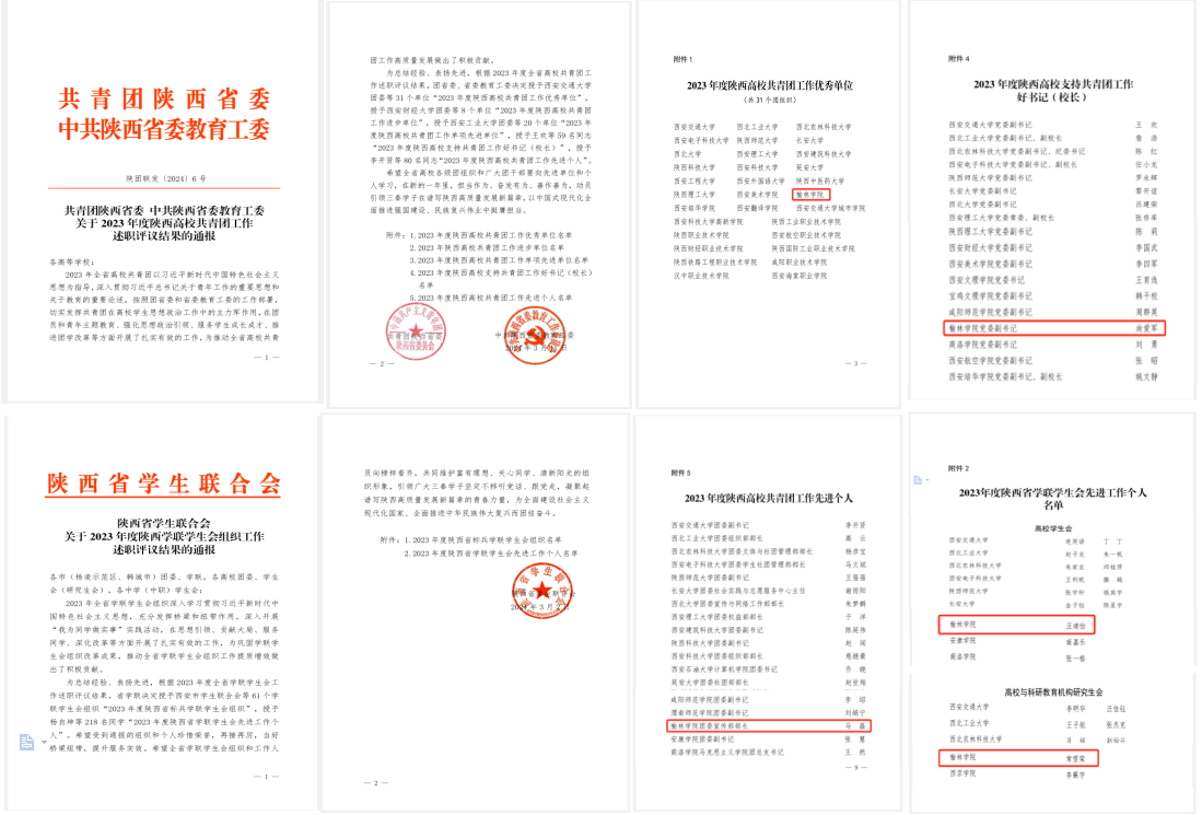 近日,共青团陕西省委、中共陕西省委教育工委公布2023年度陕西高校共青团述职评议、陕西学联学生会组织工作述职评议结果,beat365获评“2023年度陕西高校共青团工作优秀单位”,校党委副书记尚爱军获评“2023年度陕西高校支持共青团工作好书记”,校团委宣传部部长马磊获评“2023年度陕西高校共青团工作先进个人”,校学生会汪靖怡、研究生会常雪荣获评“2023年度陕西省学联学生会先进工作个人”。