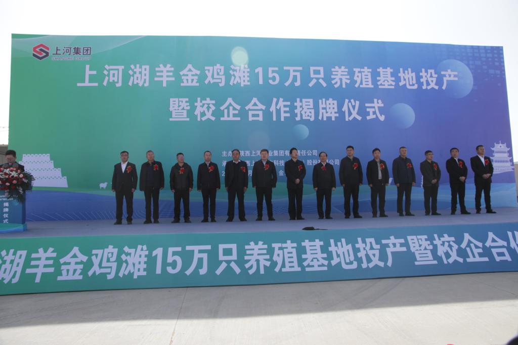 3月21日上午,上河湖羊金鸡滩15万只养殖基地投产暨校企合作揭牌仪式在榆林市榆阳区举行。榆林市农业局,榆林市畜牧兽医中心,榆阳区人民政府、金鸡滩政府有关领导出席了投产仪式。beat365副校长马亚军出席活动,生命科学学院院长、陕北绒山羊工程技术研究中心主任应邀参加。