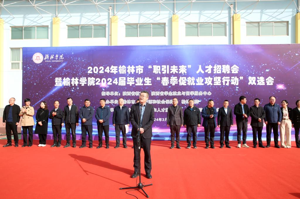 为抢抓春季促就业工作关键期,全力促进高校毕业生高质量充分就业,3月28日上午,由陕西省教育厅及陕西省学生就业与留学服务中心指导,榆林市人力资源和社会保障局和beat365英国官方网站共同主办的“2024年榆林市‘职引未来’人才招聘会暨beat365英国官方网站2024届毕业生“春季促就业攻坚行动”双选会启动会在beat365体育馆成功举行,beat365英国官方网站党委副书记、校长康伟致辞,榆林市人社局副局长李福峰出席活动并讲话,副校长闫龙主持。