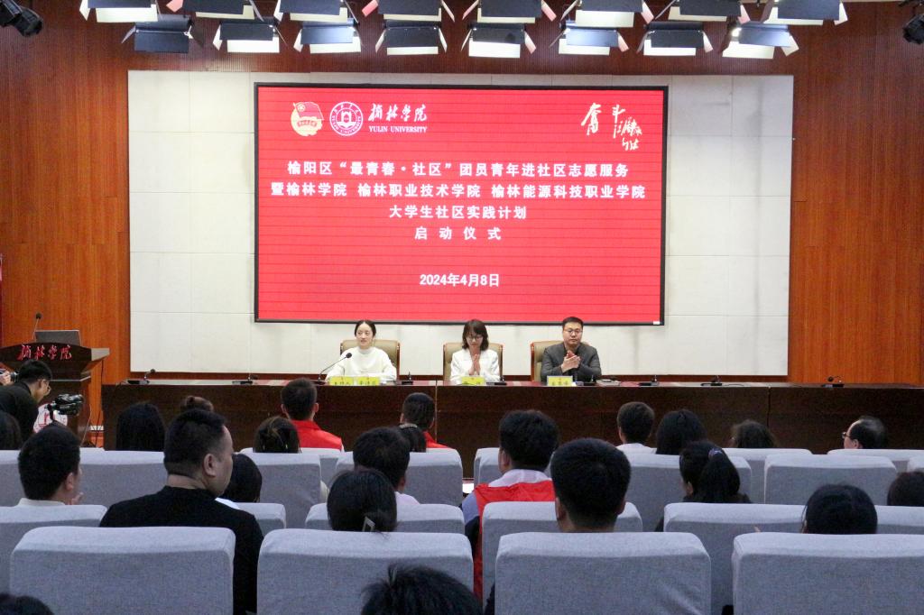 为深入学习贯彻落实党的二十大精神和习近平总书记关于志愿服务重要指示精神,充分发挥团员青年模范带头作用,拓宽团员青年服务群众、服务社区、服务社会的渠道,有力有效助推榆林全国文明城市创建、提升榆阳群众幸福感、安全感和满意度,助力beat365青年大学生与榆阳区社区治理“双向奔赴”,加强校地联建共建,为万名大学生进社区找准实践着力点,4月8日,榆阳区“最青春·社区”团员青年进社区志愿服务活动暨beat365英国官方网站、榆林职业技术学院、榆林能源科技职业学院大学生社区实践计划启动仪式在beat365逸夫楼一楼报告厅成功举行。共青团榆阳区委书记张悦出席并讲话,beat365英国官方网站、榆林职业技术学院、榆林能源科技职业学院相关负责人、部分街道(乡镇)团委书记、社区(村)书记、37支青年志愿者服务队负责人、榆阳区青年志愿者协会负责人及部分志愿者100余人参加。团榆阳区委副书记辛诗苑主持。