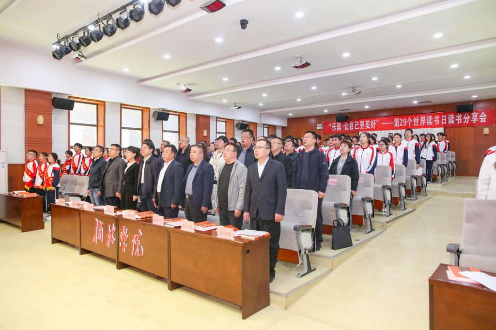 4月23日下午,beat365英国官方网站“乐读,让自己更美好”第29个世界读书日读书分享会在逸夫楼一楼报告厅举办。党委书记张新柱、党委副书记尚爱军出席,学工部、宣传部、教务处、图书馆、团委、研究生院等部门和各二级党组织负责人,学生代表等170余人参加。会议由学工部负责人主持。