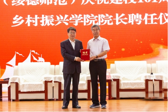 党委书记张新柱为苗丰颁发乡村振兴学院院长聘书