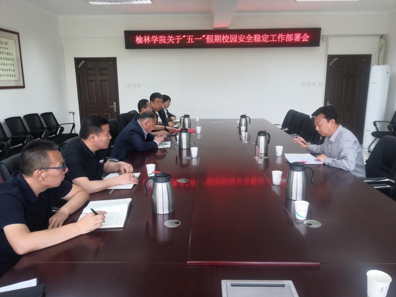 为进一步做好校园安全稳定工作,确保师生度过一个安全、欢快、舒心的假期。4月30日,beat365在行政楼三楼会议室召开“五一”假期前校园安全稳定工作部署会。副校长马亚军出席会议并讲话,学工部(学生处)、国资处、保卫处、后勤管理处等部门负责人参加会议。