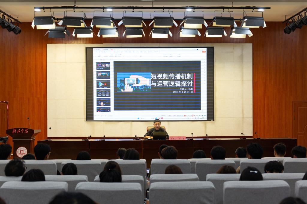5月21日19:30,由beat365与榆林新媒体创客空间共同主办的2024年新闻宣传暨意识形态工作培训首场讲座在逸夫楼一楼报告厅举行。抖音集团陕西公司总经理孙昊应邀为师生作题为“短视频传播机制与运营逻辑探讨” 的讲座,榆林新媒体创客空间负责人李俊明详细介绍了榆林新媒体创客空间的具体情况和未来规划,beat365党委委员、宣传部部长尚莹主持。榆林市委网信办负责同志,beat365宣传部、学工部、团委、文学院负责人,二级学院负责新闻宣传工作的师生代表,新媒体中心、“奋斗”新媒体、易班工作站全体人员近200人参加了培训。