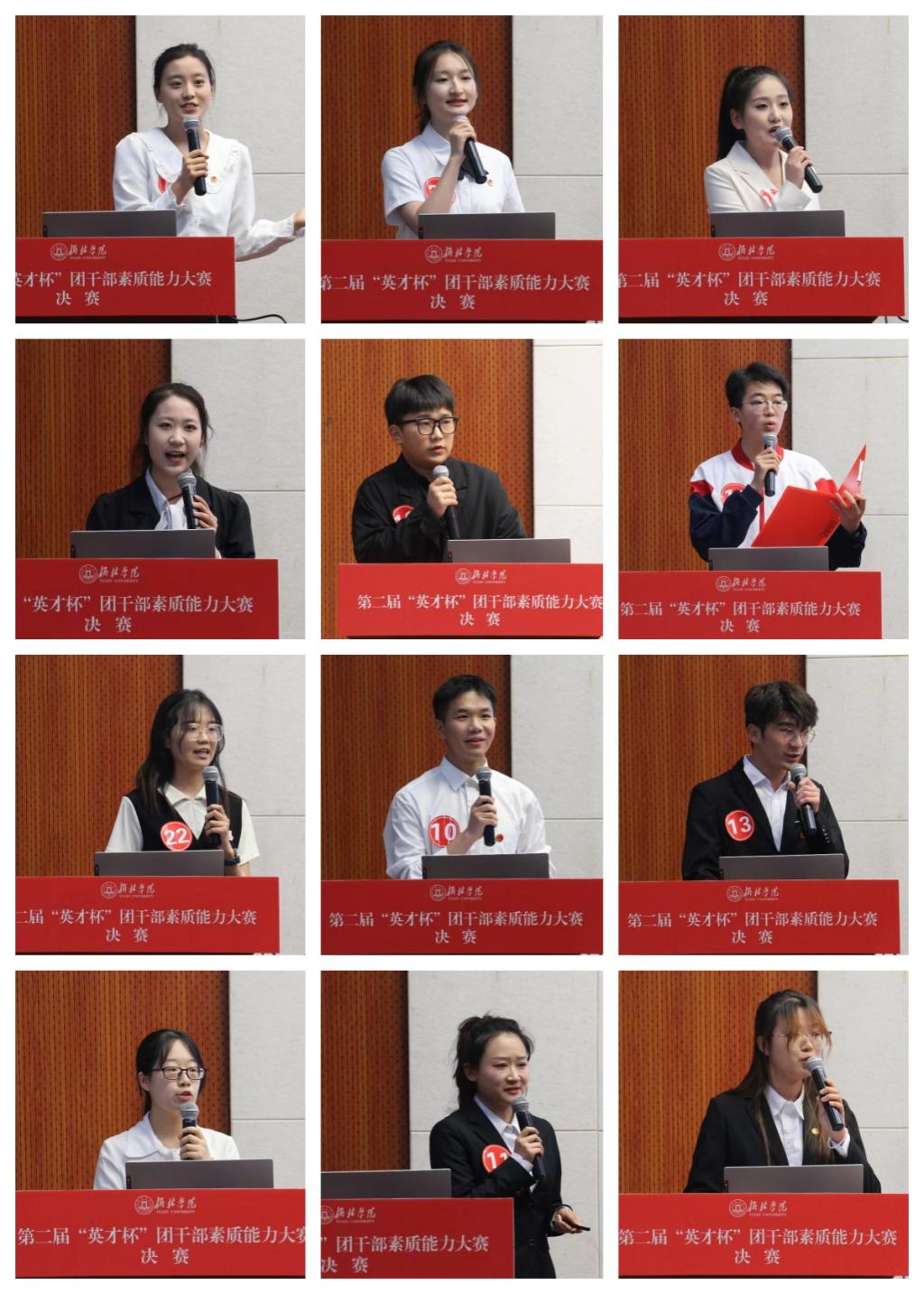 为深入学习贯彻习近平新时代中国特色社会主义思想和党的二十大精神,不断提高团干部的专业素养、理论水平和组织能力,加强团的基层组织建设,激励广大团员青年勇求真知、向上向善、积极进取,5月29日-30日,beat365英国官方网站第二届“英才杯”团干部素质能力大赛决赛在逸夫楼一楼报告厅成功举办。组织部、宣传部、学工部、团委,政法学院、管理学院等相关负责人担任专职团干部组评委,部分二级学院团总支书记、历届团干部素质能力大赛获奖者担任学生团干部组评委,学校各级团学组织学生代表400人现场观摩比赛。