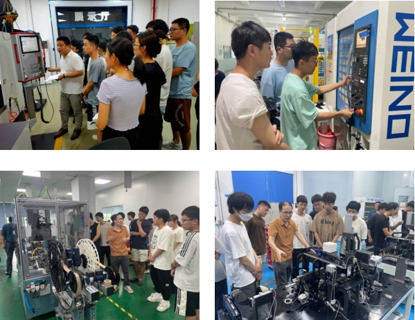 开班仪式上,东莞理工学院机械工程学院黄辉宇副院长介绍了学院的发展历程及基本情况,并对本次实习实训内容及安排进行了讲解。教学部主任廖春晖老师向学生们介绍了实训期间的相关要求及注意事项等。实训课上,授课老师向学生们详细讲授了数控机床的原理结构、操作流程、程序运行等内容。在讲授过程中,还手把手教学生操作机床,示范数控系统的运行,并指导学生编辑一段指令控制机床的运动,每位学生都很珍惜宝贵的实训机会,争先恐后地按步骤操作并运行指令。实地参观学习的过程中,来自企业的工程师们细心地为学生们介绍了自动化设备研发、生产、制造、自动化产线改造等方面的技术,以及精密零件加工,模具开发与制造的方法。