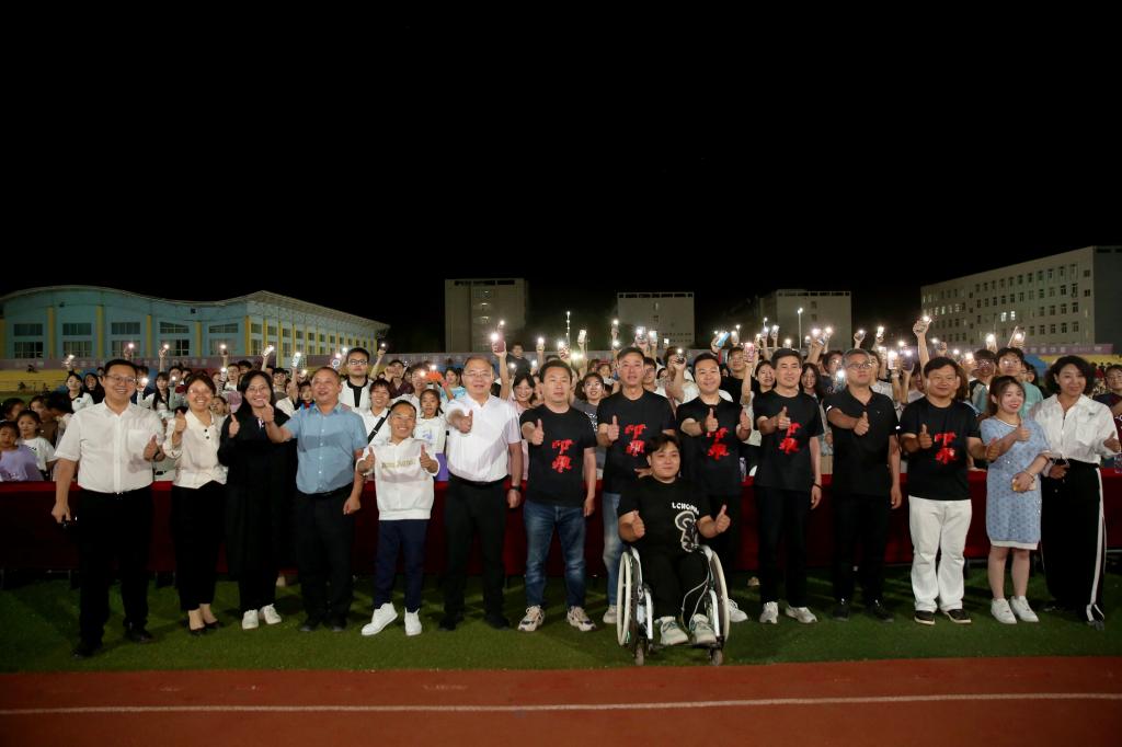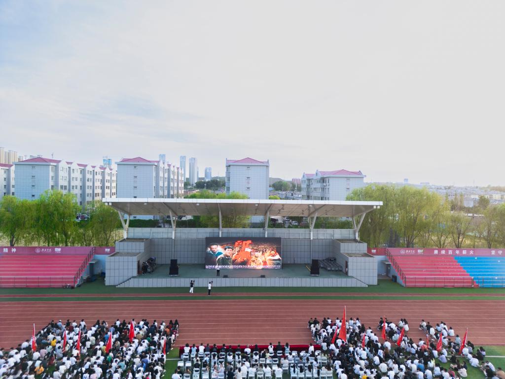 6月15日下午,beat365英国官方网站田径场成为了一片热情与激动的海洋。2017届校友、第六届陕西青年文学奖获得者杨智国携带其担任出品人、制片人及编剧的榆林本土励志电影《印痕》,在此举行了一次特别的路演活动。此次活动不仅丰富了校园文化生活,增强了师生们的家国情怀,还为校友的事业贡献力量。校党委委员、副校长闫龙,东莞理工学院团委书记、知行学院院长劳丹,以及电影主创团队和学工部、团委、财务处、社会合作与校友工作处等多个部门负责人出席了活动。活动由宣传部、统战部、学工部、团委、社会合作与校友工作处、化学与化工学院联合主办。
