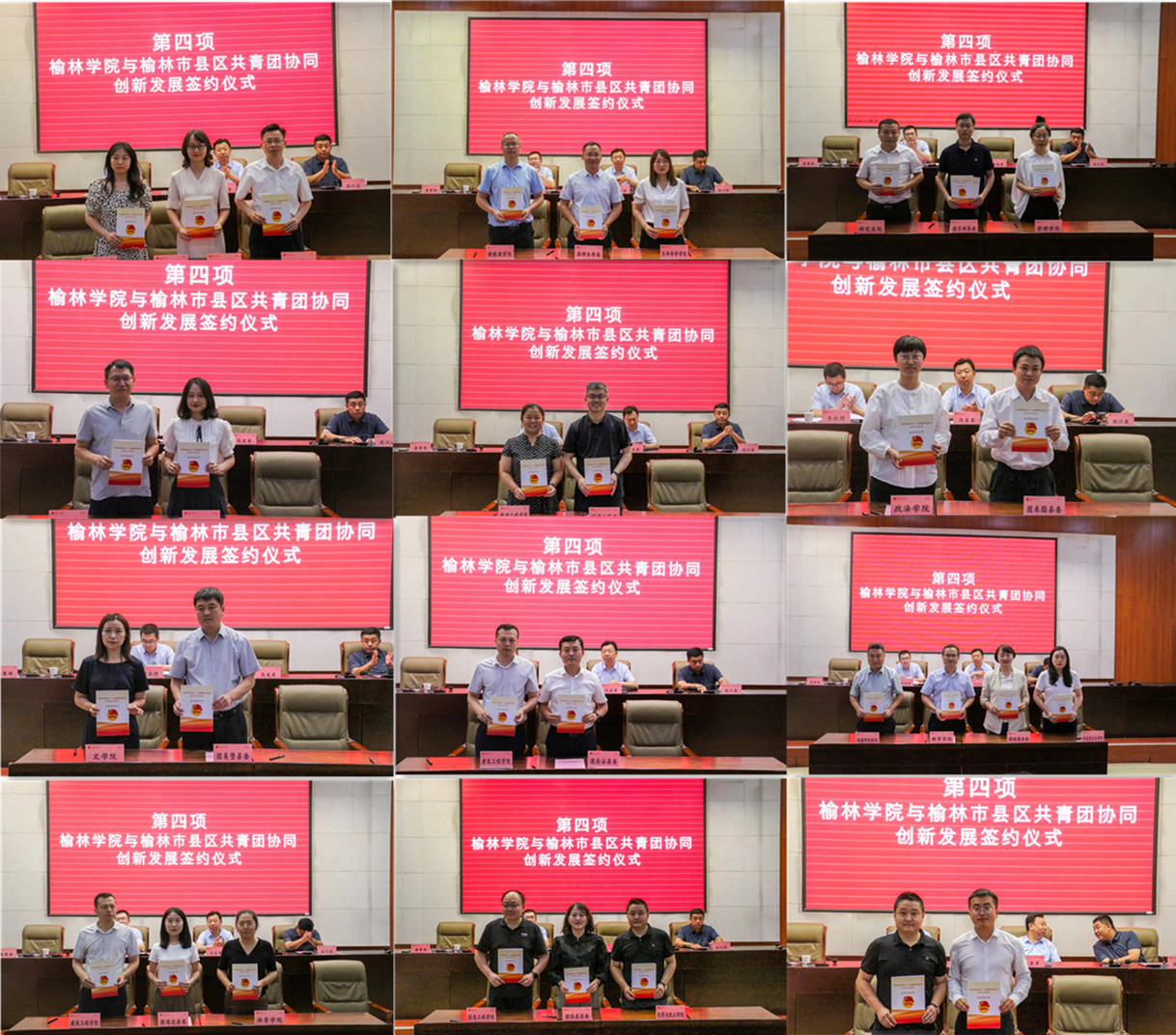 beat365英国官方网站副校长马亚军致辞,团榆林市委副书记李秋同讲话,榆林市各团县(区)委书记与二级学院党总支签订协同创新发展协议,beat365英国官方网站学工部、团委负责人,各二级学院党总支书记、副书记团总支书记、辅导员、“三下乡”带队指导教师,学校各团学组织负责人、二级学院团总支副书记、学生会主席、志愿者协会会长及部分学生代表参加。校团委书记蹇攀峰主持。