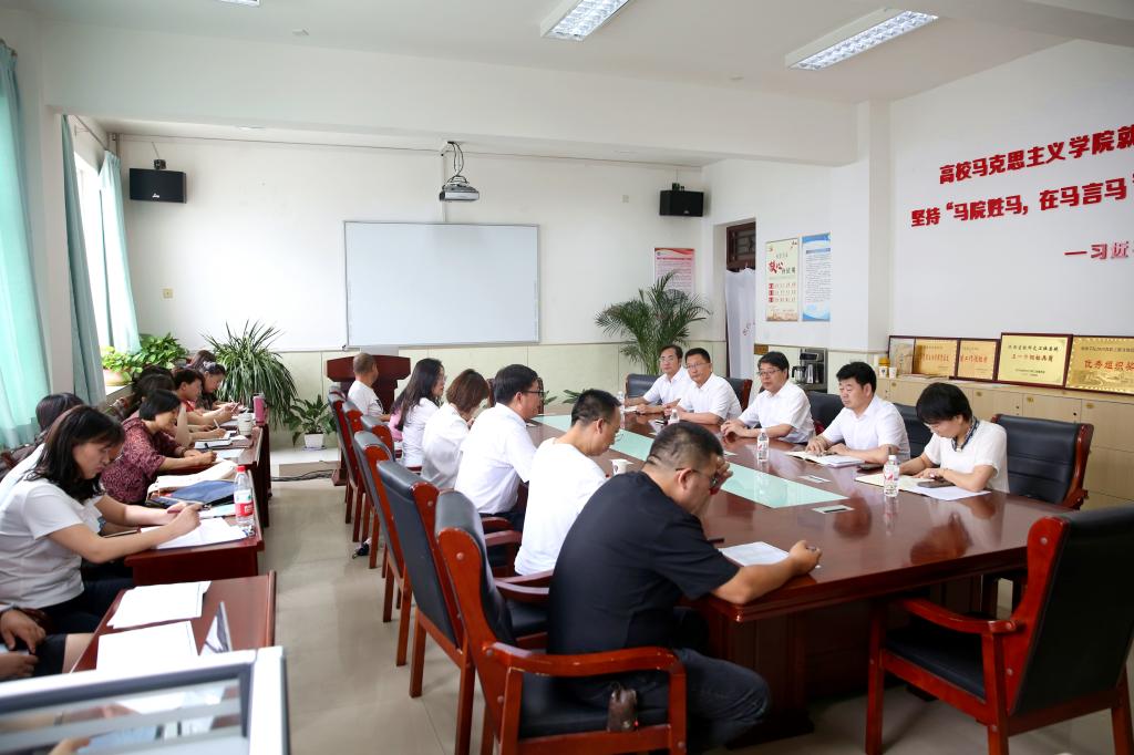 在“七一”建党节来临之际,6月28日,党委书记张新柱带着学校党委的关怀和组织的温暖,到马克思主义学院调研座谈,党政办、组织部、宣传部、统战部等负责人陪同调研。马克主义学院全体教师参加调研座谈会。