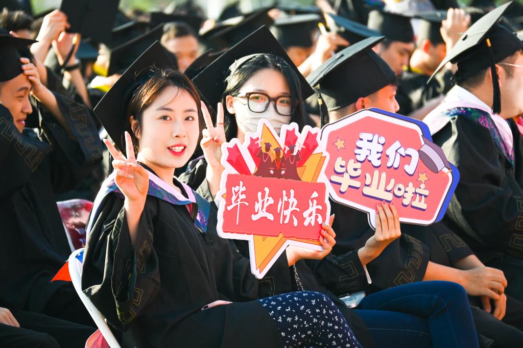毕业典礼在师生代表倾情合唱的《祝你一路顺风》的歌声中落下帷幕。