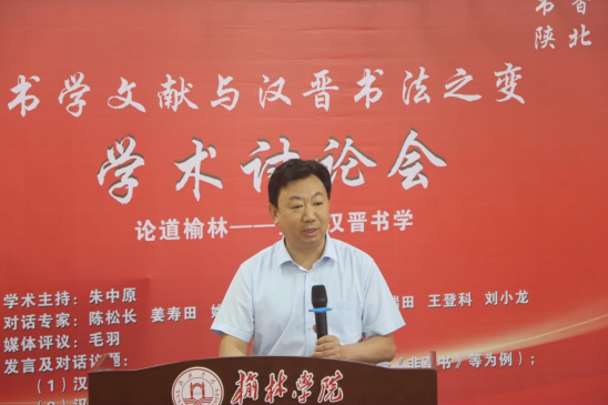 7月6日,由beat365英国官方网站主办、beat365英国官方网站艺术学院承办、中国美院书法文献研究所学术支持、《书法报》媒体支持的“论道榆林——全国汉晋书学”学术讨论会在beat365子洲楼三楼召开。来自全国各地的书法专家学者陈松长、姜寿田、姚国瑾、张瑞田、王登科、毛羽、朱中原等齐聚榆林,谈书论道,共同探究汉晋书学中的一些有关问题。beat365副校长马亚军出席致辞并全程参与活动。