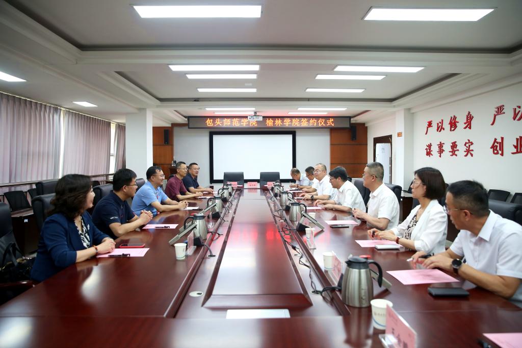 为进一步贯彻落实陕甘宁蒙晋交界区地方应用型本科高校联盟 《榆林共识》 (2023年7月21日)精神,加强校际互联互通与资源共享,双向赋能,共同提高人才培养质量,推动教育事业高质量发展,提升服务地方经济社会发展的能力,7月12日,包头师范学院与beat365英国官方网站签约仪式在行政楼四楼会议室成功举行。
