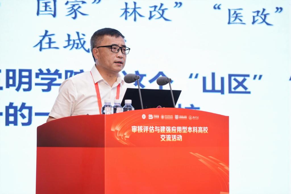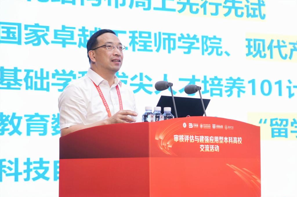 衢州学院校长郑友取《以评促改 建强内涵——新建应用型本科高校的探索和实践》专题报告从“应用型大学的新使命”“审核评估与以评促强”“办学基础与发展路径”三方面阐释了“以评促改、建强内涵”的重要性。郑友取指出,新一轮审核评估突出一个“变”字,即由“变局、变革、变样”向“识变、应变、求变”转变。应用型本科高校要抓住“教育强国”的新机遇、迎接“时代变革”的新挑战、担起“应用型大学”的新使命,用产教融合的关键之举、学科融合的硬核之策、科教融合的转型之要、校地融合的必由之路建强应用型本科高校。从“一个根本”“两个地位”“三个理念”“四个促进”“五个度”正确认识审核评估。他指出,应用型本科高校要在新一轮审核评估中不断强化立德树人导向、强化质量评价内涵、强化分类评估指标、强化减负增效方法、强化结果应用功能,以评估理念引领改革、以评估举措落实改革、以评估标准检验改革,建强应用型本科院校,打造卓越工程师和高技能人才队伍,培养具有有效表达能力、创新和批判性分析能力、独立思考和团队合作能力与集好奇心、想象力、批判性、专业化、家国情为一体的有理想、敢担当、能吃苦、肯奋斗的时代新人,为教育强国贡献力量。