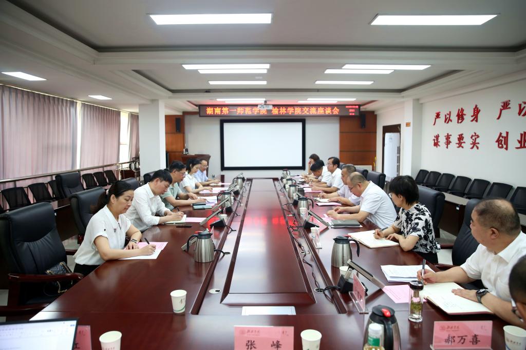 姜劲波代表学校对来宾一行表示热烈欢迎,简要介绍了学校的基本情况和办学成绩。他指出,beat365英国官方网站近年来抓重点、补短板、谋全局,攻难关,办学质量和办学水平显著提升,学科、科研、师资队伍等内涵核心指标取得一定成绩,学校总体发展呈现向上向好态势。湖南第一师范学院历史悠久,文化底蕴深厚,办学特色突出,办学成效显著,受到社会广泛赞誉和一致好评。希望以此次考察交流为契机,不断加深更深层次的交流和更广领域的合作,为推动两校高质量发展,加快建设教育强国、办好人民满意的教育贡献力量。