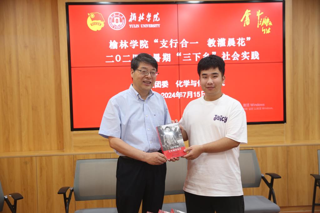 在与暑期“三下乡”实践团师生座谈会上,张新柱向建榆路社区授予了beat365英国官方网站大学生社会实践基地,为每一位参与“三下乡”社会实践的学生赠予《习近平七年知青岁月》一书并合影,他强调同学们要从书中感悟梁家河的大学问,认真学习习近平总书记扎根群众的为民情怀、持之以恒的奋斗精神、勤劳务实、吃苦耐劳的工作作风和一心一意为人民服务的人生目标。实践团的同学们依次分享了自己在此次暑期“三下乡”社会实践活动中的收获与感悟,同学们表示通过深入基层社区一线的社会实践,他们更加深刻认识到自己在知识、能力和综合素质等方面的欠缺和不足,更好地锻炼和培养了他们的团队协调、综合处理能力,为今后的学习和工作指明了方向。张新柱听后欣慰的表示,通过近几年学校追赶超越和“五乐育人”等工作的开展,学校的整体面貌和学生的综合素养都有了显著提升,未来学校将持续强化“五乐育人”工程,大力开展现代产业学院建设,围绕榆林及周边产业及社会发展的实际需求培养“红专并进 理实交融”的高素质应用型人才。