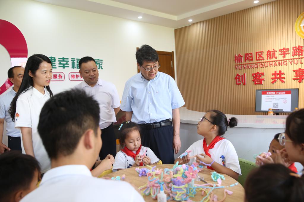 在建榆路社区,党支部书记陈程远向张新柱一行详细介绍了社区开展社区建设、社会服务、基层党建等工作的基本情况。张新柱一行深入社区食堂、党建活动室、图书阅览室等场所调研指导;张新柱要求参加走访调研的同志要认真向基层学习,强调基层工作不能停留在表面,不论学校还是社区一线,在基层党建和基础性工作上都要有特色有优势,要相互学习,取长补短,要努力干出特色、品牌和高质量。张新柱还走进“三下乡”社会实践团开展的陕北民歌课堂、手工制作课堂和趣味化学科普课堂等观摩指导并与实践团成员就如何有效开展教学活动进行深入交流,对实践团的实践工作及课堂教学给予了充分的肯定。