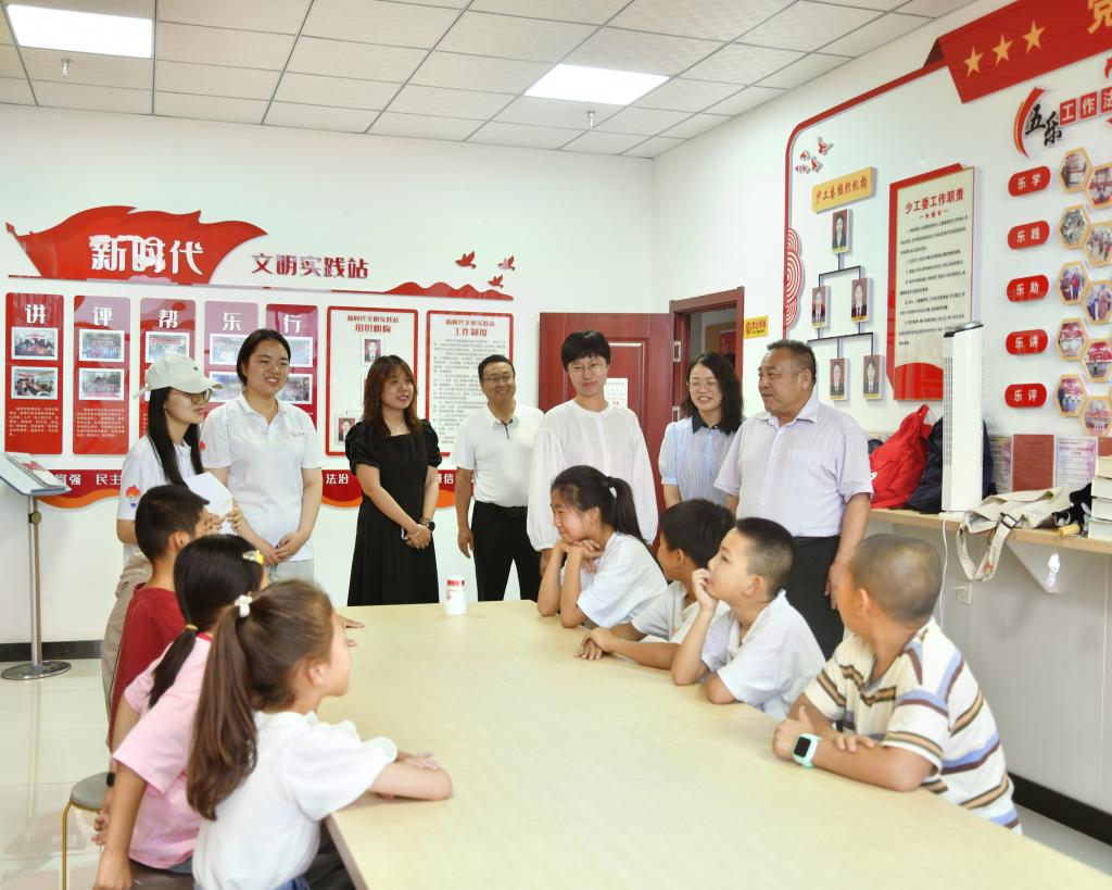 在崇民社区,姜劲波首先参观了由“守护朝夕美好——关爱一老一小”暑期社会实践队精心策划并实施的暑期儿童成长营。姜劲波对实践队成员们的辛勤付出和取得的成果给予了高度评价,并鼓励大家继续发扬榆苑学子奋斗精神,为社区和谐发展贡献青春力量。