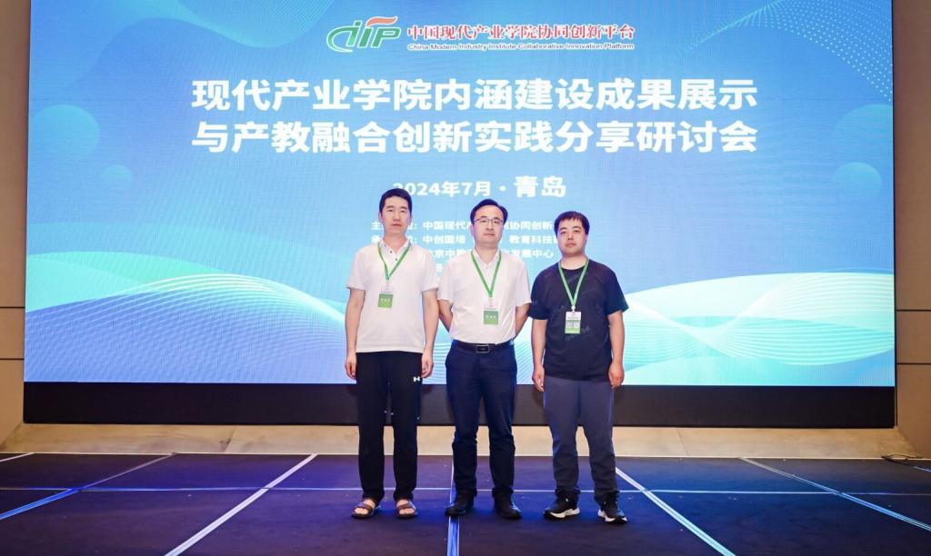 深化产教深度融合、校企全面合作,是高等教育支撑新质生产力发展的必然要求,现代产业学院作为产教深度融合的载体已成为推动教育创新和产业发展的重要力量。为进一步推动现代产业学院内涵建设,深化产教融合,促进教育链、人才链与产业链、创新链的有机衔接,展示现代产业学院内涵建设的成果与经验,分享产教融合的创新实践案例,探讨产教融合的新模式与未来发展趋势,促进高校和行业企业的双向交流,提升现代产业学院建设水平,7月30日-8月1日,现代产业学院内涵建设成果展示与产教融合创新实践分享研讨会在青岛举办,来自近80所高校的200余名领导、专家教授参会。研讨会由中国现代产业学院协同创新平台主办,青岛黄海学院、青岛职业技术学院、中创国培(北京)教育科技研究院、北京中教政研文化发展中心承办。beat365信息工程学院院长张峰等一行五人参加了此次会议并做了“应用型地方大学人工智能产业学院建设的实践与思考”主题报告。