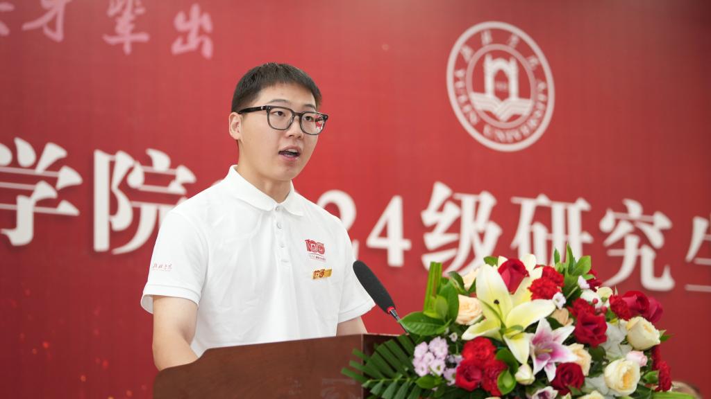 在校研究生代表卢勃旺分享了读研以来对科研、生活的感悟和体会,希望学弟学妹们可以在一次次的失败中找寻经验,用青春和汗水书写属于自己的时代篇章,成功走向人生更好的舞台。