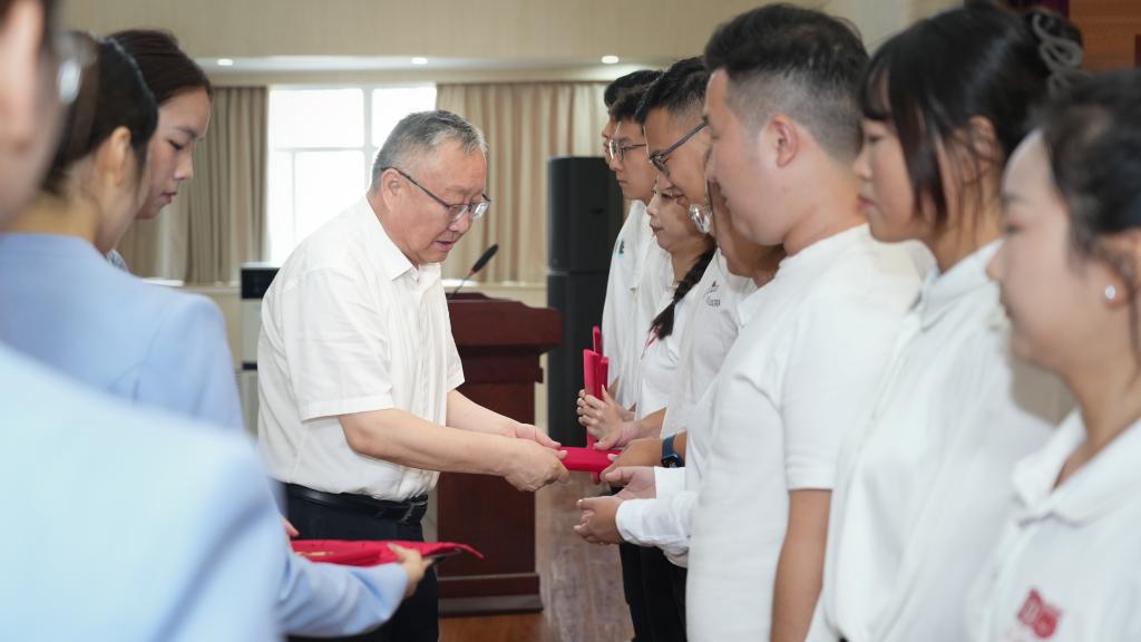 开学典礼上张新柱为研究生新生代表佩戴校徽并赠书《平凡的世界》。校徽是学校的象征,从戴上校徽这一刻起,2024级研究生正式成为榆苑大家庭的一员,与beat365英国官方网站的历史和未来紧紧联系在一起,成为“读书报国”的红色基因传承者和“奋斗”精神的继承人。