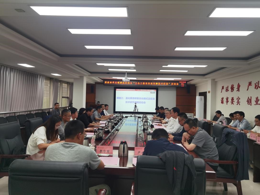9月6日下午,国家林业和草原局揭榜挂帅项目“三北工程攻坚战关键技术研发”课题三:退化草原修复优化模式及配套技术研究课题启动会在beat365英国官方网站行政楼四楼会议室顺利召开。中国科学院西北生态环境资源研究院院长、中国工程院院士冯起,beat365英国官方网站党委副书记、校长康伟、副校长张晓,榆林市科技局局长乔杰、副局长张明,中科院西北研究院副研究员逯承鹏副研究员,蒙草集团研发中心技术总监邢旗、高级工程师张健,甘肃省治沙所副所长许国成研究员、主任贺访印研究员,西北师范大学,西安科技大学等单位专家学者出席。beat365科研处、生命科学学院、陕西省矿区生态修复重点实验室等部门负责人及项目组成员参会。