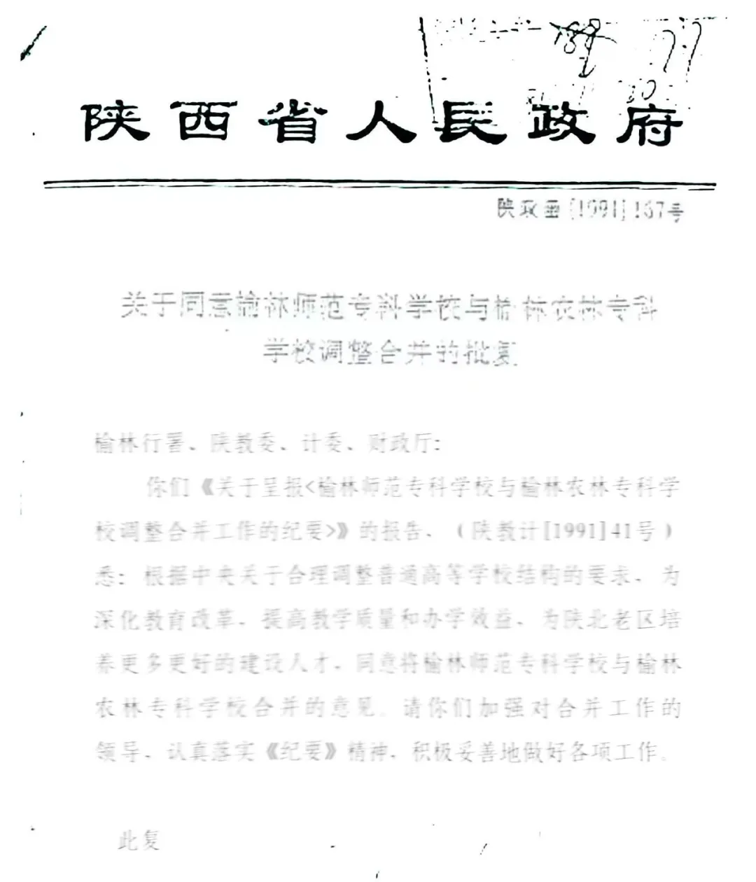 ▲1978年,批转省教育局《关于举办陕西师范大学西安 、咸阳、渭南、榆林专修科有关问题的意见》