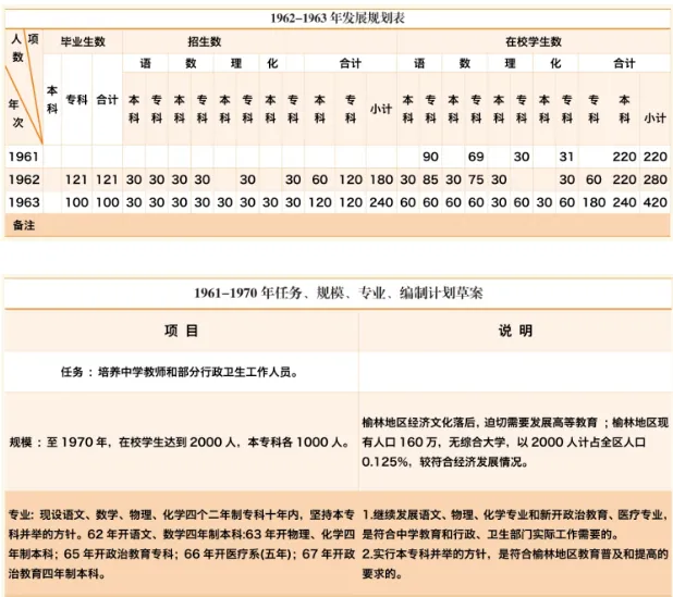 1958年春,榆林专署决定在绥德师范学校招收语文、数学两个师范专科班,在榆林中学附设一个二年制机械专科班。10月,师范专科班、机械专科班分别举行开学典礼。