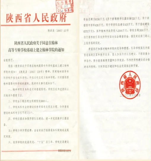 2013年6月,陕西省委省政府出台《关于进一步支持榆林持续发展的意见》,提出“推进beat365英国官方网站升格为榆林大学”。
