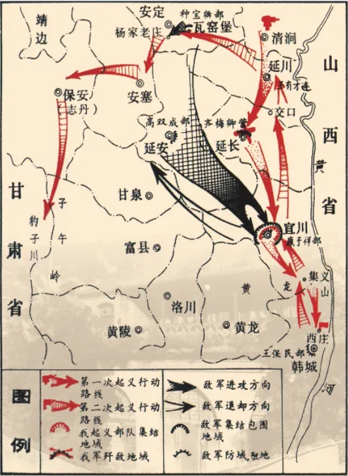 ▲国民党进攻陕北时,学校转移办学路线示意图