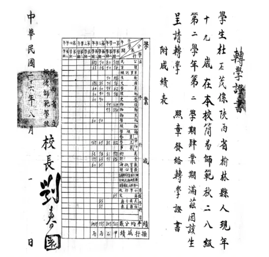 ▲ 1937年转学证