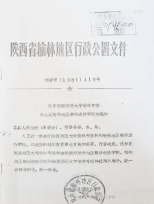 1979年,榆林行署决定在新校址已建起部分建筑物的基础上,成立榆林地区教师进修学校。