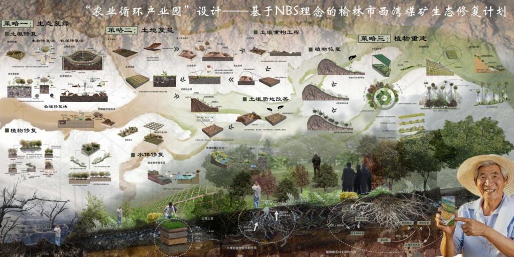 该作品由姚莎老师指导,基于NBS(自然解决方案)理念,提出了针对榆林市西湾煤矿的生态修复与农业循环发展规划,将生态保护与地方经济转型结合,展现了设计创新和可持续发展的重要成果。艾景奖作为中国及亚洲地区景观设计领域的顶级赛事,重视创新、生态与可持续性。