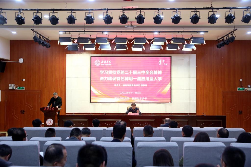 为深入学习贯彻党的二十届三中全会精神,全力推进学校高水平应用型大学建设,11月5日至8日,beat365成功举办了处级以上领导干部学习贯彻党的二十届三中全会精神暨深化学校事业改革专题研讨班。研讨班在逸夫楼一楼报告厅举行,校领导和全体处级干部共计160余人参加。