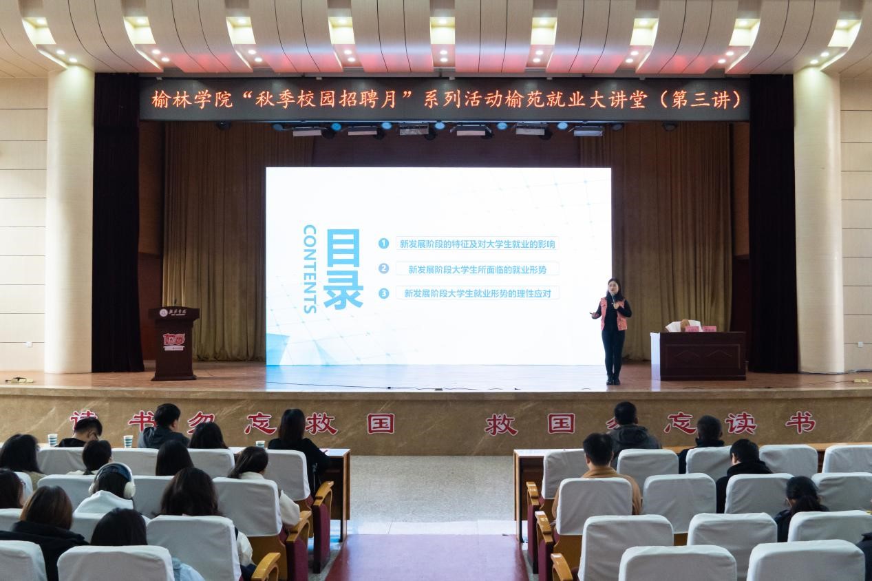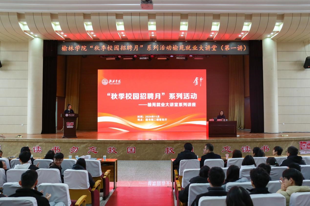 为深入贯彻落实党中央、国务院《关于实施就业优先战略促进高质量充分就业的意见》及教育部2025届全国普通高校毕业生就业创业工作会议精神。帮助学生进一步了解当前的就业形势及就业政策,明确就业选择,掌握求职技巧,提升就业能力,促进beat3652025届毕业生高质量充分就业。2024年11月,招就处成功举办“秋季校园招聘月” 系列活动——榆苑就业大讲堂。此次讲座吸引了34名各学院副书记、就业专干、辅导员和毕业班班主任以及来自不同专业、不同年级的1200余名学生踊跃参与。