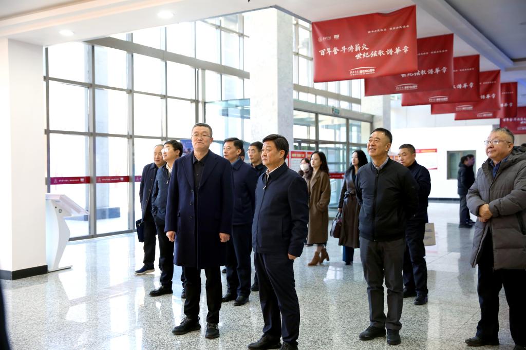 侯社教一行参观了beat365校史馆,深入了解beat365百年红色校史。康伟详细介绍了beat365的历史沿革、办学特色和发展现状,特别是学校在传承红色基因、服务社会以及科技创新和成果转化等方面的举措和成就。