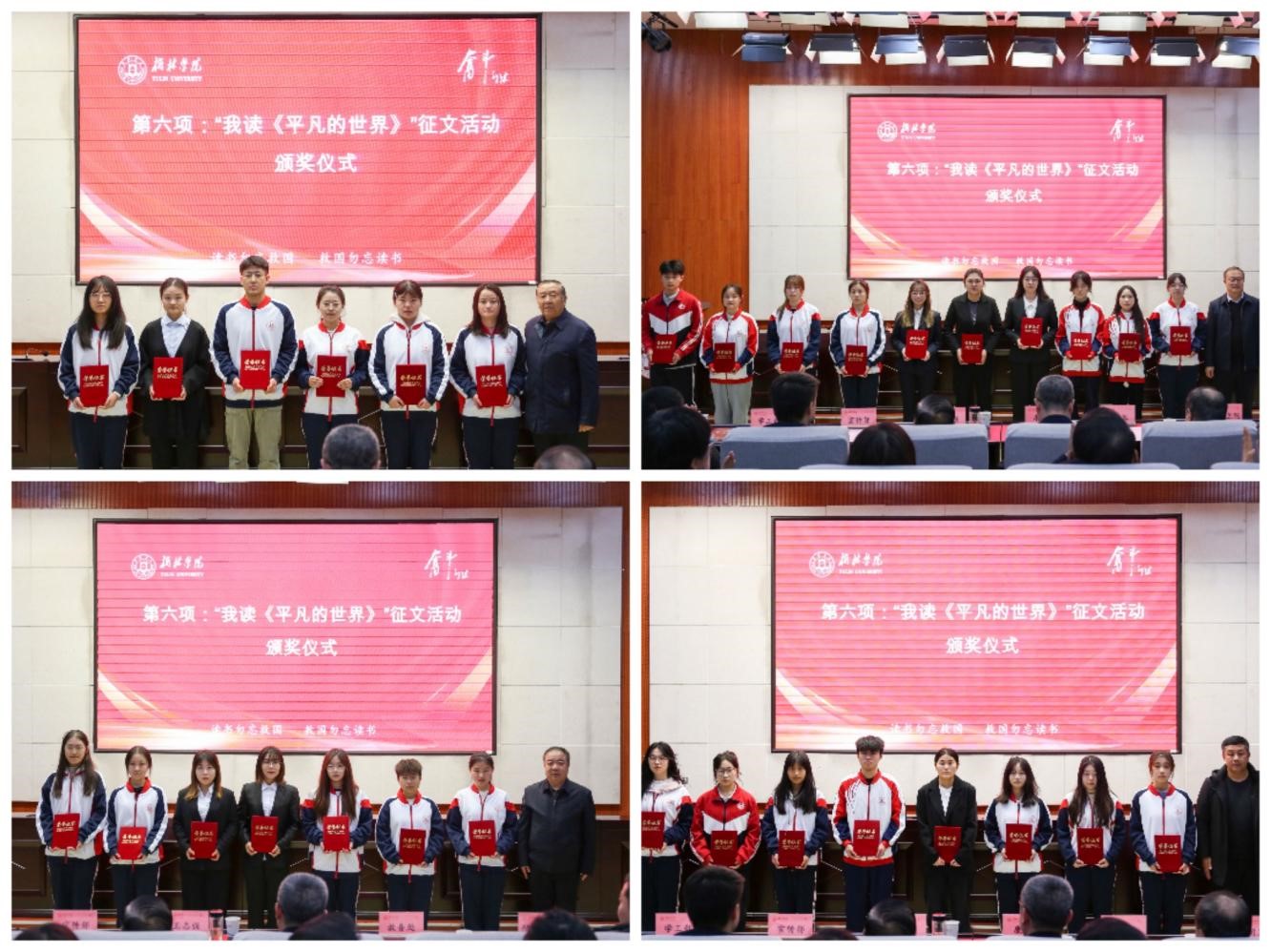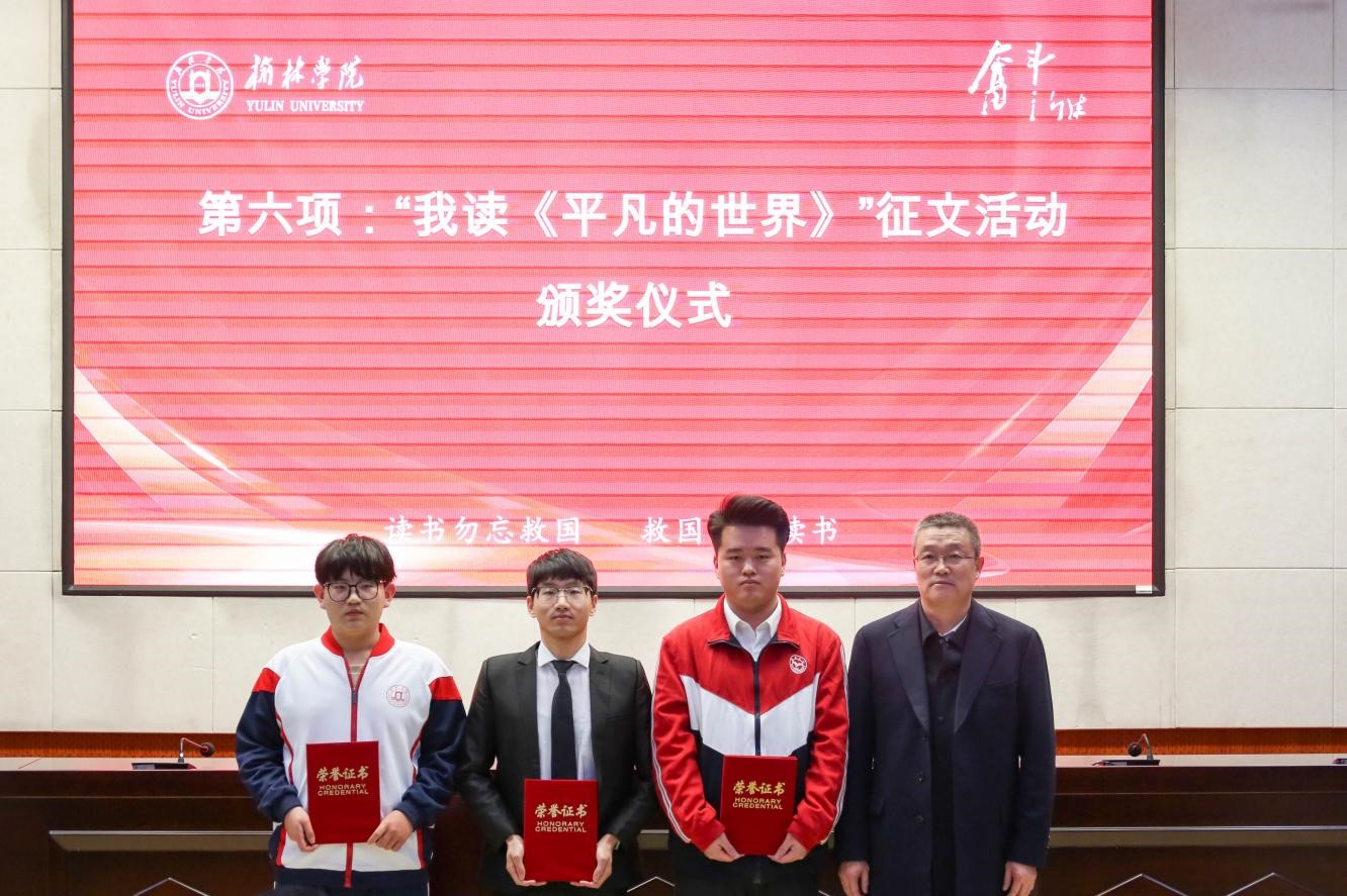 康伟向“我读《平凡的世界》”征文活动一等奖获得者和优秀组织单位颁奖。他勉励受表彰的同学要学习路遥精神,树立崇高理想,涵养浩然之气,爱读书、读好书、善读书,以自己的实际行动带动和影响广大学生,共同营造校园浓厚的“乐读”氛围。