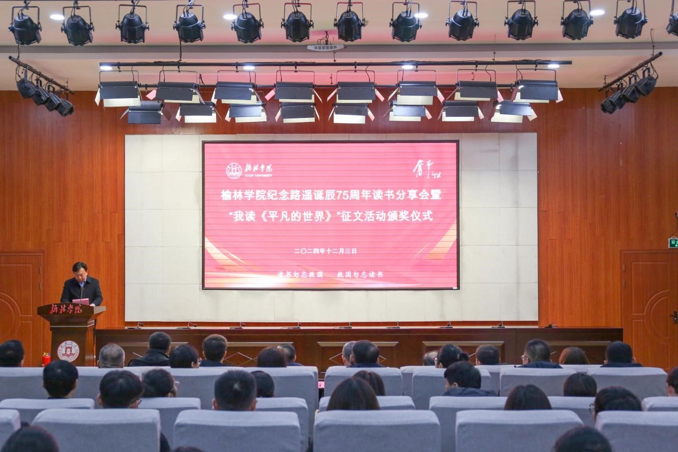 马亚军在总结讲话中向获奖的同学表示祝贺,并充分肯定了各学院在开展“乐读”引领校园阅读风尚方面取得的成效。他指出,当前学校正在全面深入开展乐讲、乐读、乐跑、乐唱、乐劳“五乐育人”工程,在“乐读”方面,学校每年为每位新生赠送《平凡的世界》,举办了“走进公寓问需求,畅谈平凡话奋斗”、“我读《平凡的世界》”征文、读书分享会、名师导读系列讲堂等一系列形式丰富多彩、学生喜闻乐见的读书活动,着力培养学生读书习惯,激发学生读书热情,提升学生综合素养。就如何进一步开展“乐读”活动,他提出三点希望:一是希望同学们学习传承路遥精神。“路遥”是榆林的一张知名的文化名片,“路遥精神”是陕北的一个精神符号,学习好、传承好、弘扬好“路遥精神”就是对路遥最好的怀念。要通过重温路遥的奋斗足迹,阅读路遥的经典著作,感悟奋斗人生,弘扬路遥精神,汲取奋进力量,争做新时代“最美奋斗者”。二是希望同学们积极参加“乐读”活动。青春正是读书时,最是书香能致远。同学们要向今天受表彰的同学学习,珍惜光阴、不负韶华,积极参加各类“乐读”活动,走进名著,阅读经典,从书本里学真知、悟真谛,在实践中长才干、壮筋骨,练就担当作为的硬脊梁、铁肩膀、真本事,奋力书写为中国式现代化挺膺担当的青春篇章。三是希望各学院打造“乐读”特色品牌。要优化阅读阵地、丰富阅读载体,凝练特色书单、选树优秀典型,总结特色亮点、展示阅读成果,引导学生走近经典、深入经典,通过阅读滋润精神世界,汲取奋进力量和文化智慧,久久为功、驰而不息,纵深推进“乐读”工作,着力打造书香校园,提高人才培养质量,助推学校内涵式高质量发展。