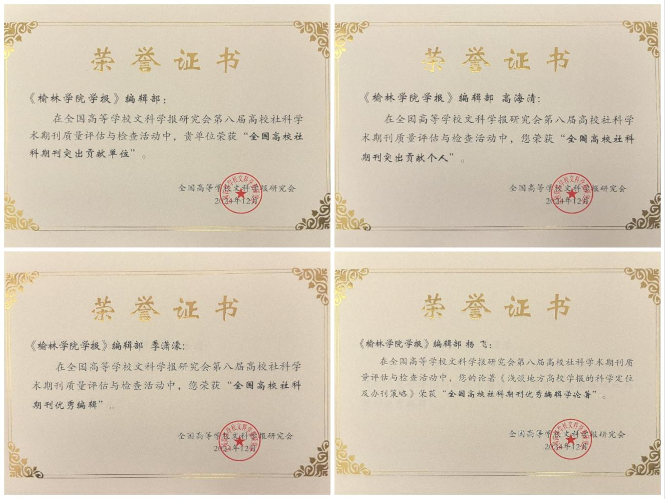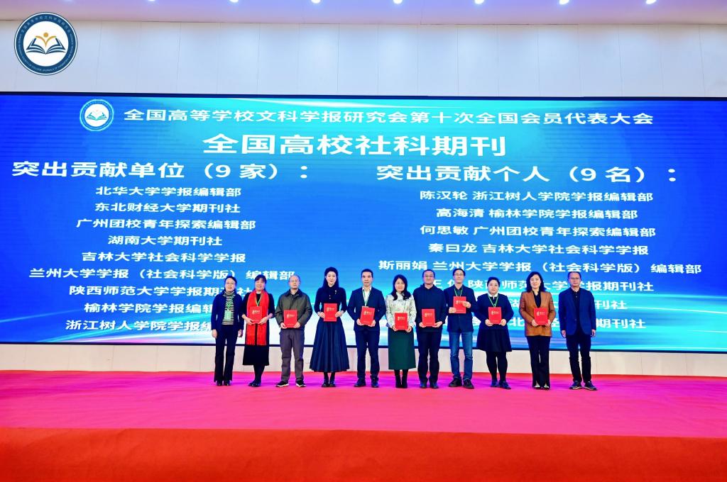 来自全国各地高等学校文科学报的700余名会员代表参加了会议。beat365学报编辑部首次当选理事单位,并荣获“全国高校社科期刊突出贡献单位”称号;编辑部主任高海清教授当选为研究会理事,并获“全国高校社科期刊突出贡献个人”称号;编辑季潇濛荣获“全国高校社科期刊优秀编辑”称号;编辑杨飞的论文荣获“全国高校社科期刊优秀编辑学论著”称号。