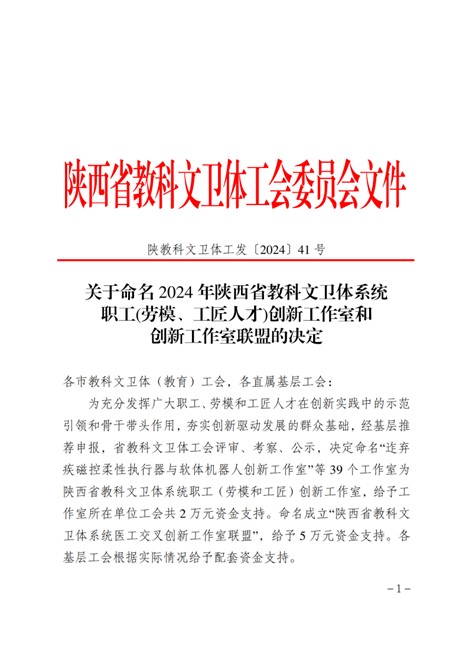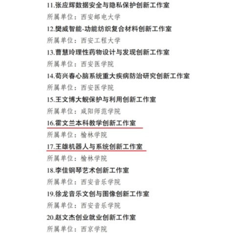 近日,省教科文卫体工会下发《关于命名2024年陕西省教科文卫体系统职工(劳模、工匠人才)创新工作室和创新工作室联盟的决定》,beat365英国官方网站化学与化工学院“霍文兰本科教学创新工作室”和能源工程学院“王雄机器人与系统创新工作室”获此殊荣。