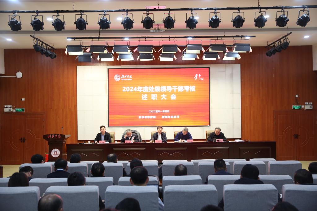 张新柱指出,2024年是全校持续团结奋斗、实干苦干的又一年,大家都能够对标对表,攻坚克难,全面高质量完成了各项任务,非常值得肯定,为大家的辛勤付出点赞。述职呈现出三个主要特点:一是追赶超越超额完成,改革创新提质增效;二是党建领航强劲有力,干部能力显著提升;三是服务地方日益强健,学术活动精彩纷呈。