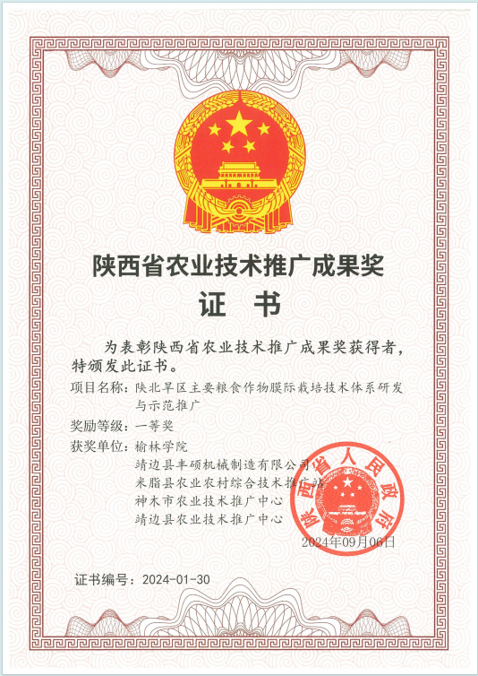 2024年,获得省部级科研成果奖项18项,其中,获得陕西省科学技术奖3项,湖南省科学技术奖1项,陕西省农业技术推广成果奖12项,“陕北旱区主要粮食作物膜际栽培技术体系研发与示范推广”荣获陕西省农业技术推广成果一等奖,首次实现主持自然科学领域一等奖的突破;获得陕西高等学校科学研究优秀成果奖22项,数量位居省属高校第3位;8人入选陕西省中青年科技创新领军人才、青年科技新星、秦创原“科学家+工程师”首席科学家等。13人入选第二批“榆林科技之光”项目,支持经费198万元,7人入选市级“科学家+工程师”队伍首席科学家名单,22人获得榆林市青年人才托举计划项目支持。